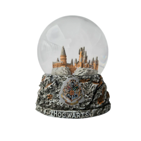 Está realizada en resina con incrustación del castillo de Hogwarts en su interior y al agitar la esfera se mueve la nieve , la base posee el escudo de Hogwarts en el frente .
