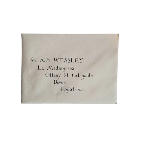 Realizada en papel color natural , ecologico , con detalle en color rojo que simula el lacre en el frente del sobre .