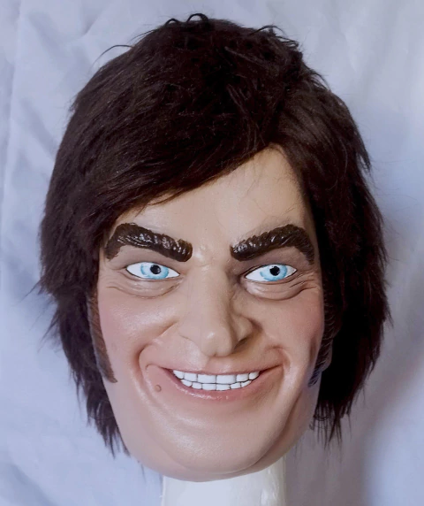 en material látex pintada a mano, cubre la cara y en la parte posterior tiene peluca , los ojos tienen una abertura para que puedas ver .